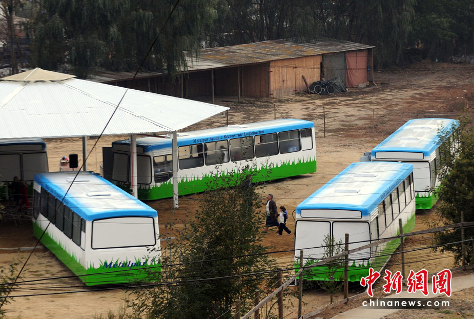 4月26日,今年2月遭受8.8級(jí)強(qiáng)烈地震的智利康塞普西翁市,兒童們?cè)凇鞍褪繉W(xué)校”里上課。