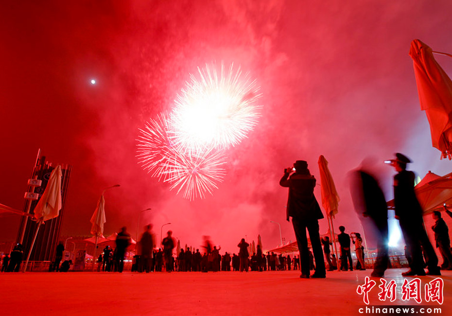 4月27日,上海浦西園區世博煙花預演。張棟/CFP