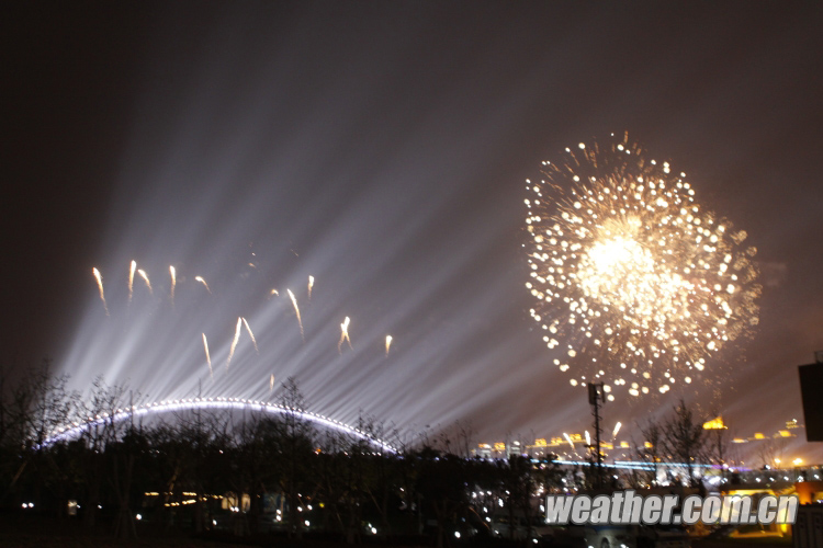 2010年4月27日,上海世博會(huì)開幕式彩排順利進(jìn)行。圖為燈光與煙花互相映襯,十分絢麗。卞赟 攝
