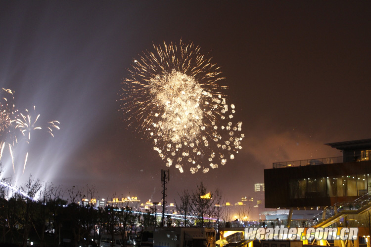 2010年4月27日,上海世博會開幕式彩排順利進行。圖為美麗的煙花。卞赟 攝