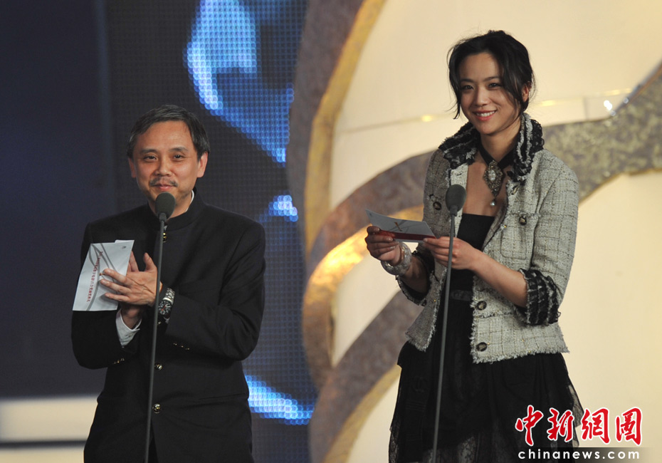 4月28日,第十屆電影頻道數字電影百合獎頒獎典禮舉行。湯唯攜手陳嘉上成為頒獎嘉賓為優秀男演員頒獎。呂聿來、王景春獲得優秀男演員將,優秀女演員被吳越、董玲搬走。 中新網記者 金碩 攝