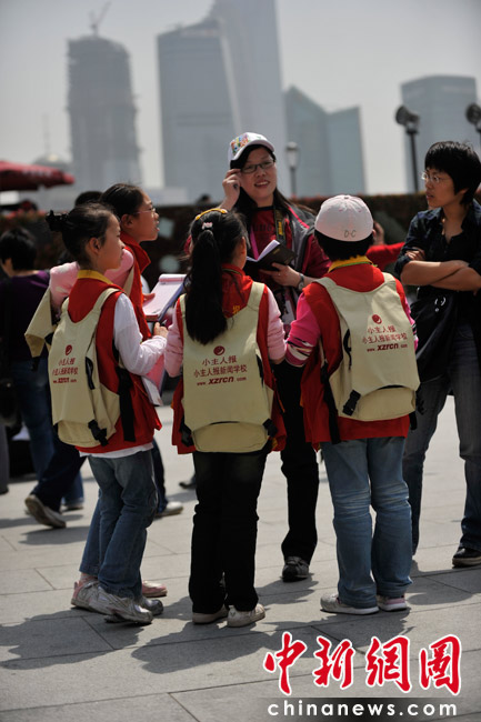30日上午,記者在上海外灘采訪時遇到小主人報新聞學校的“小記者”們在采訪,成為他們今天的第一個采訪對象。“小記者”們最關心的問題是關于世博會,“如何讓世界變得更美好”。她們都表示非常想去看世博會,最想看的是中國館,但是要留到最后看,“因為其它館都會拆掉,中國館會保留下來”。“小記者”們說,自己要從身邊小事做起,做有文明有素質的人,并表示希望自己將來成為真正的“大記者”,更好地報道上海。吳歆/文 王紅綱/圖