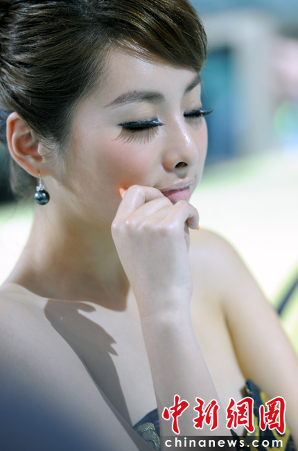 “第十一屆北京國際車展”是名車新品搶先亮相的舞臺,也成了車模們爭奇斗艷的場所,參觀者在車展中可以享受兩道視覺大餐。中新網(wǎng)記者 金碩 攝