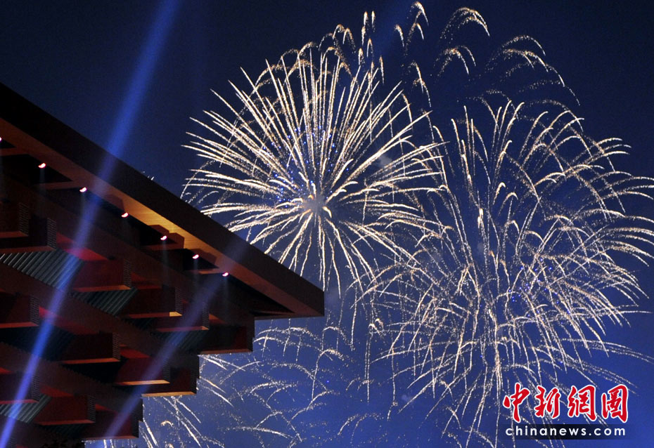 世博會絢麗多彩的焰火表演