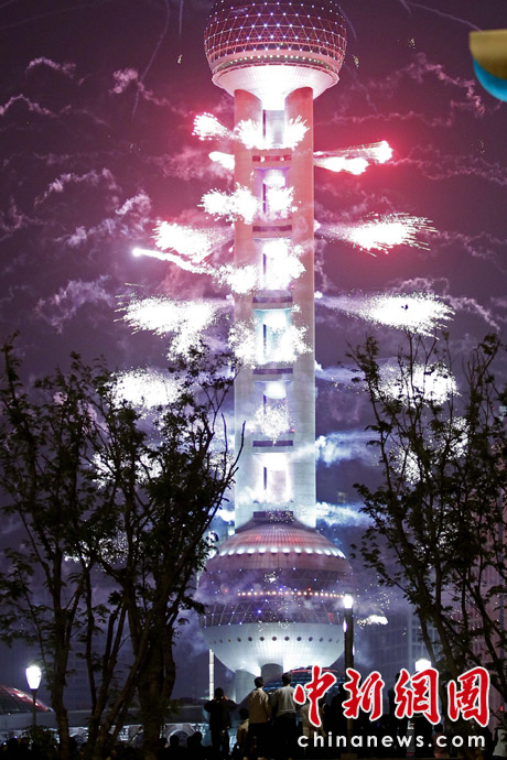 4月30日,上海世博會開幕,黃浦江畔火樹銀花姹紫嫣紅,這座夢想成真城市的千萬居民,在這個注定難忘的夜晚盡情燃燒和釋放著自己的激情。中新社發 盛佳鵬 攝