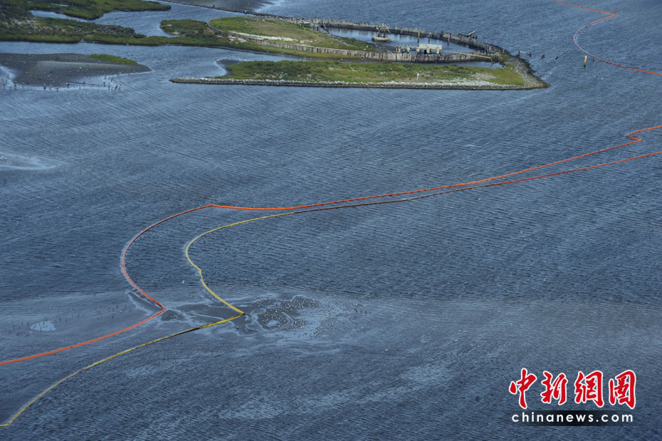 4月30日,在美國(guó)路易斯安那州海岸,為阻隔原油擴(kuò)散而設(shè)的護(hù)欄帶被海風(fēng)浪沖到岸邊。當(dāng)天,美國(guó)總統(tǒng)奧巴馬下令調(diào)查墨西哥灣石油鉆井平臺(tái)爆炸事件,以避免將來(lái)類似事件再次發(fā)生。平臺(tái)爆炸沉沒(méi)后泄漏的原油當(dāng)天已漂至美國(guó)沿岸。圖片來(lái)源:中國(guó)新聞網(wǎng)