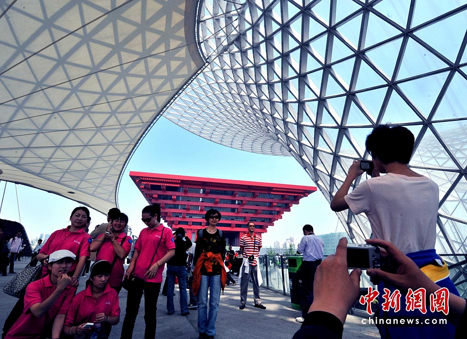 5月1日,2010上海世博園正式開園第一天,參觀者從浦東、浦西10多個出入口進入園區,世博園區內游人如潮。中新社發 賈國榮 攝
