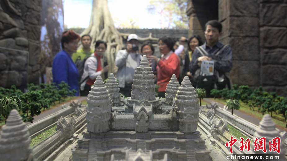 5月1日,觀眾在世博會柬埔寨館內觀賞吳哥窟模型。當日,上海世博會柬埔寨館開館。中新社發(fā) 蘇丹 攝