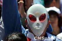 26日(周一),波多黎各,一名學生身穿怪異服飾抗議學費上漲。