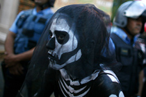 5月2日,觀眾在上海世博會印度館觀看四維全息圖影,用聲光電的方式展示了印度近年來的科技成就。中新社發 蘇丹 攝