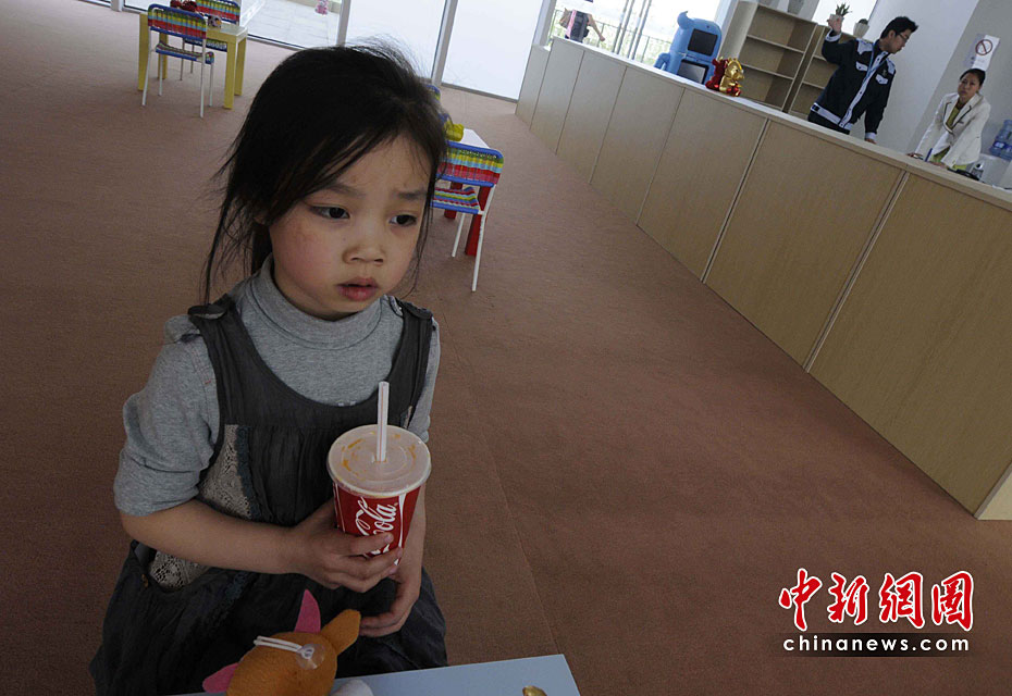 5月2日清晨,7歲的林姝彤小朋友剛跟著伯伯嬸嬸進入上海世博園,就在亂哄哄的人流中走丟了,志愿者把她領(lǐng)到走失兒童認領(lǐng)處。服務小姐在詢問她的姓名等關(guān)鍵詞之后,會立即廣播尋人啟示。結(jié)果,她很快就和親人團圓了。中新社記者 賈國榮 攝