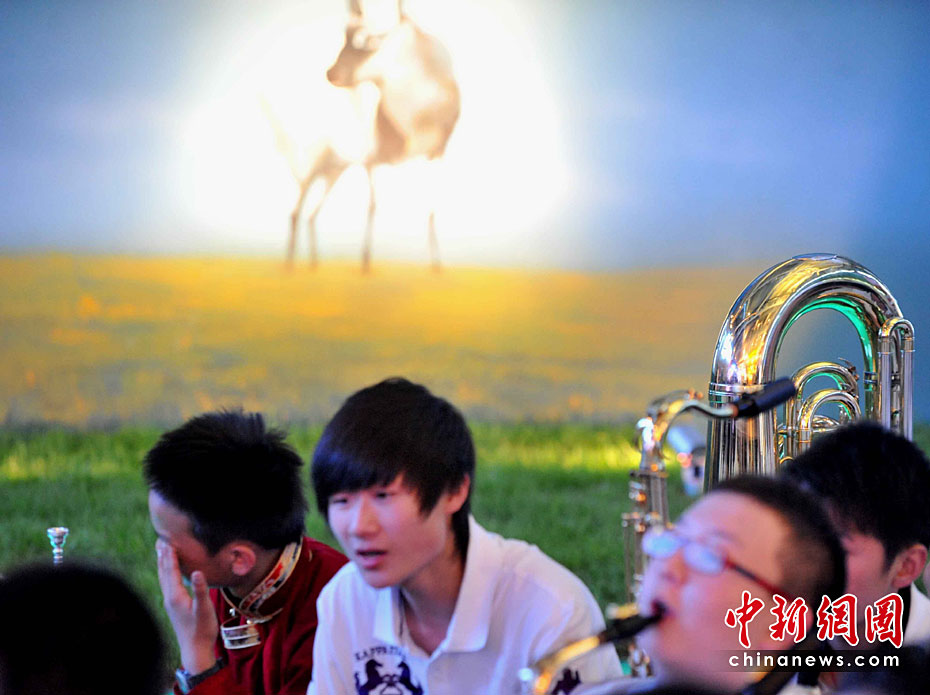 5月2日清晨,來(lái)自玉樹地震災(zāi)區(qū)結(jié)古鎮(zhèn)的藏族小樂手巴東珠,含著姐姐在地震中不幸遇難的悲痛心情,與小白楊中學(xué)生管弦樂團(tuán)來(lái)到上海世博會(huì),為中國(guó)青海館觀眾獻(xiàn)上一曲《在那遙遠(yuǎn)的地方》。他悲歡交融的情懷和演藝,感動(dòng)全場(chǎng)。巴東珠之前還是青海省人民醫(yī)院為地震傷員做藏語(yǔ)翻譯的志愿者。中新社記者 賈國(guó)榮 攝