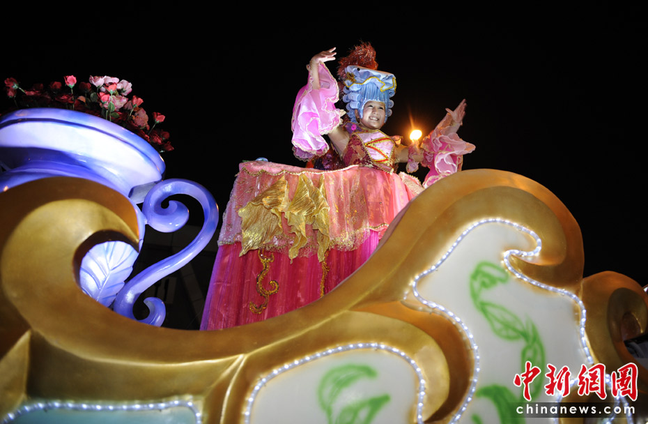 5月2日晚,由一輛輛充滿異域風情的花車和身著盛裝的表演者組成的“歡樂盛裝大巡游”在世博園區舉行。中新網記者 王紅綱 攝