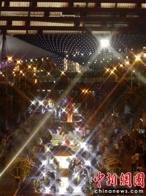 5月2日晚,由一輛輛充滿異域風(fēng)情的花車和身著盛裝的表演者組成的“歡樂盛裝大巡游”在世博園區(qū)舉行。中新網(wǎng)記者 盛佳鵬 攝