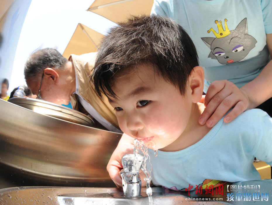 隨著上海世博園正式開園,各大展館迎來了八方游客,其中不乏一些小孩子也來上海感受世博盛況。中新社發(fā) 廖攀 攝