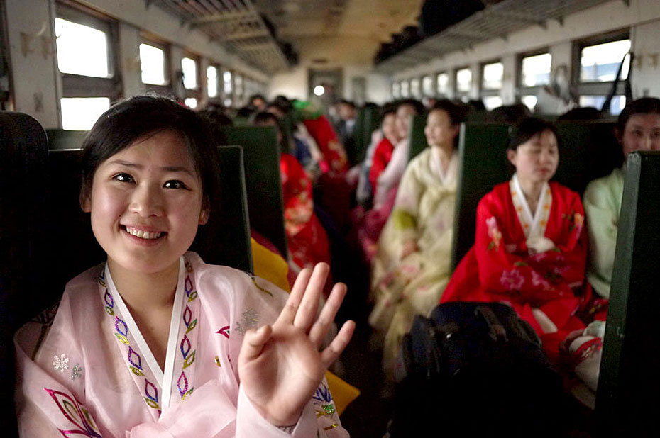 5月2日,載著198名朝鮮紅樓夢劇組演員的專列駛入丹東口岸。由朝鮮國家級藝術團-血海歌劇團創作的歌舞劇《紅樓夢》將于5月6日至9日登陸北京電視臺大劇院,這個超大演員陣容亦創下近年來華國外演出人數之最。圖片來源:新華網