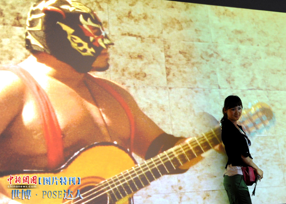 逛世博一定會拍照留念,擺一個漂亮有創意的pose尤為重要。面對著鏡頭,挺胸收腹翹臀,一個微笑,一個手勢,秀出自己的活力。心中一定要默念:“我留下的不是照片,是心情!”圖為世博園盧森堡館內,投影屏幕中的肌肉猛男與屏幕前的中國美女形成有趣對照。中新社發 廖攀 攝