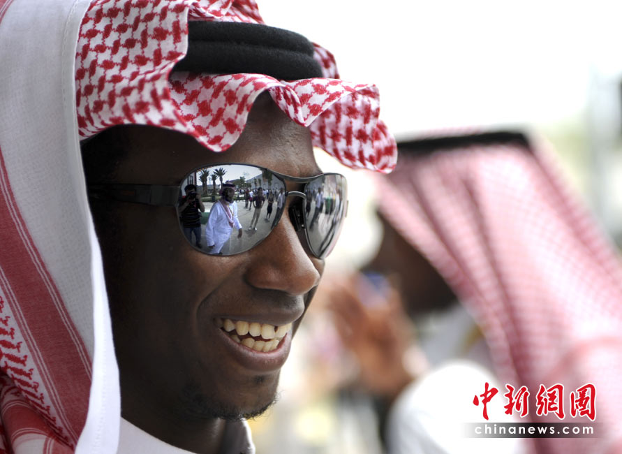 5月4日,上海世博園沙特館的工作人員歡樂接待游客。中新社發(fā) 廖攀 攝