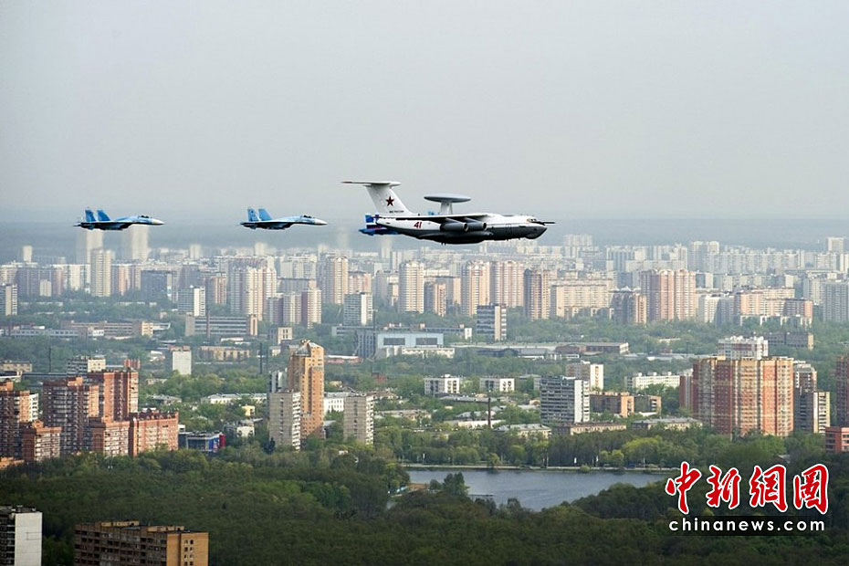 當(dāng)?shù)貢r間5月4日,在俄羅斯首都莫斯科,參加彩排的戰(zhàn)機編隊飛過紅場上空。俄羅斯將于5月9日隆重紀(jì)念衛(wèi)國戰(zhàn)爭勝利65周年。圖片來源:中國新聞網(wǎng)