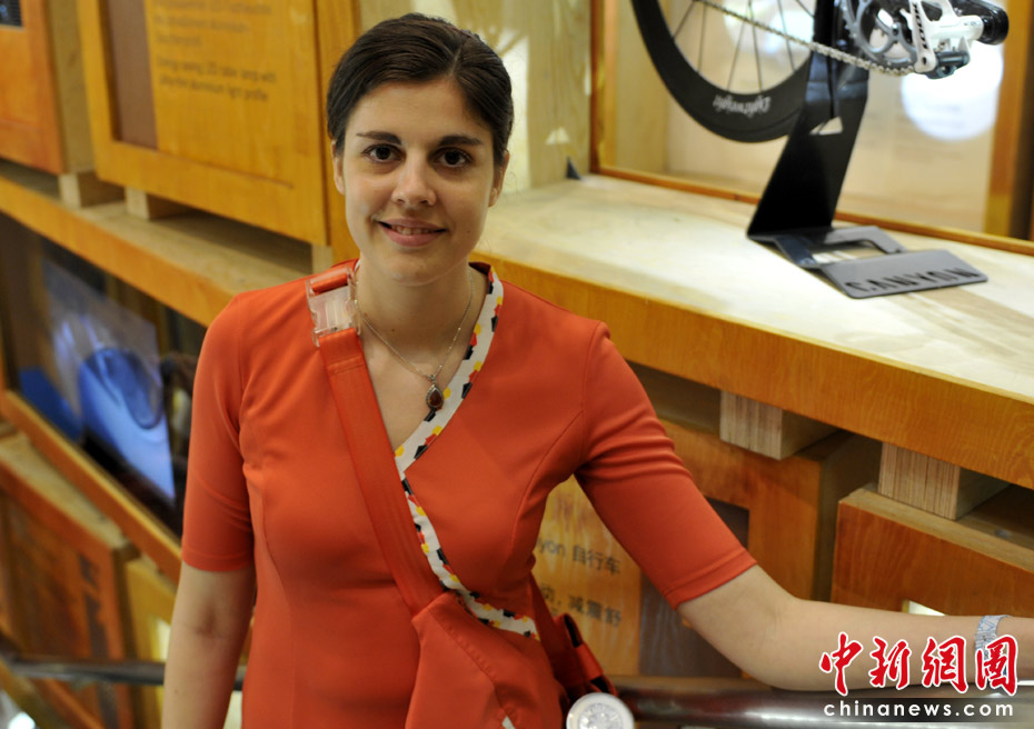 美麗的德國館工作人員,她們都能用一些簡單的漢語與中國游客交流。中新網記者 王紅綱 攝
