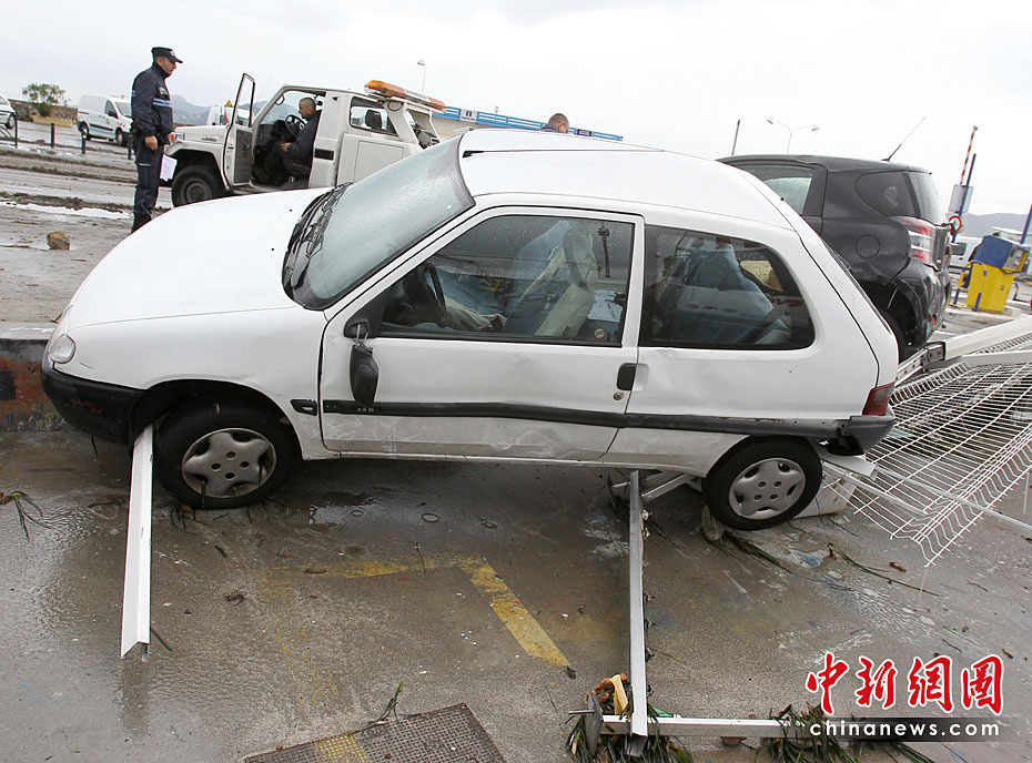 近日,在法國南部城市尼斯,巨浪襲擊城市的海岸后造成城市道路癱瘓。法國南部部分地區遭遇大風和巨浪,使當地交通和供電受到不同程度的影響。圖片來源:中國新聞網