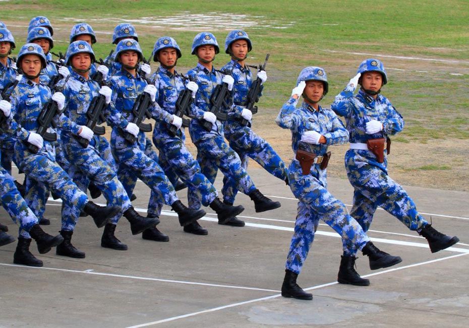 5月5日,海軍陸戰(zhàn)隊(duì)方隊(duì)通過主席臺(tái)接受檢閱。圖片來源:新華網(wǎng) 查春明攝