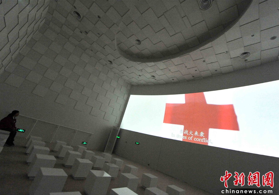 5月8日是上海世博會(huì)的紅十字會(huì)和紅新月會(huì)館榮譽(yù)日,兩會(huì)在簡樸如醫(yī)療帳篷的館里,運(yùn)用聲光電展示大量紀(jì)實(shí)圖片,于大災(zāi)大難中顯示救死扶傷的大愛,可歌可泣。這兩個(gè)鮮紅標(biāo)志的人道救援組織,一百多年來遵循著堅(jiān)定不移的宗旨——“經(jīng)歷戰(zhàn)爭與災(zāi)難的黑暗,我們更需要人道的光芒”。世界的未來,還將依靠它紅色的光明,去驅(qū)散天災(zāi)人禍的陰影。中新社發(fā) 賈國榮 攝