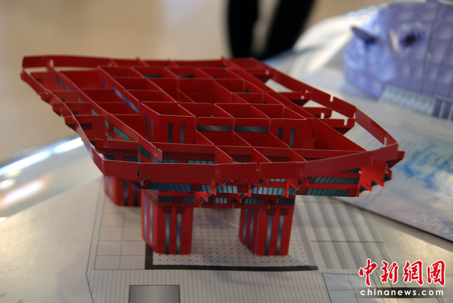 世博園區(qū)內(nèi)的特許商品店里,折紙場館惟妙惟肖,頗受游客的喜愛。圖為中國館紙模型。中新網(wǎng)記者 吳歆 攝
