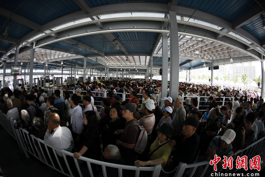 圖為排隊(duì)進(jìn)入園區(qū)參觀的游客。中新社記者 盛佳鵬 攝