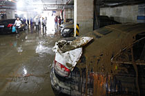 5月10日,廣州中海康城地下停車場遭水浸的汽車終于重新出水。受5月7日的大雨影響,廣州市東圃地區(qū)的中海康城的地下停車庫發(fā)生嚴(yán)重的水浸。經(jīng)過4天日夜不斷地抽水,5月10號上午,地下車庫里面的水終于干了。4天來一直轟鳴的水泵昨日終于停了下來。早晨7時許,眾車主陸續(xù)來到車庫,370多臺車橫七豎八排開,幾只塘虱在淤泥里挪動著。在拖車出庫的時候,不少車主淚流滿面。