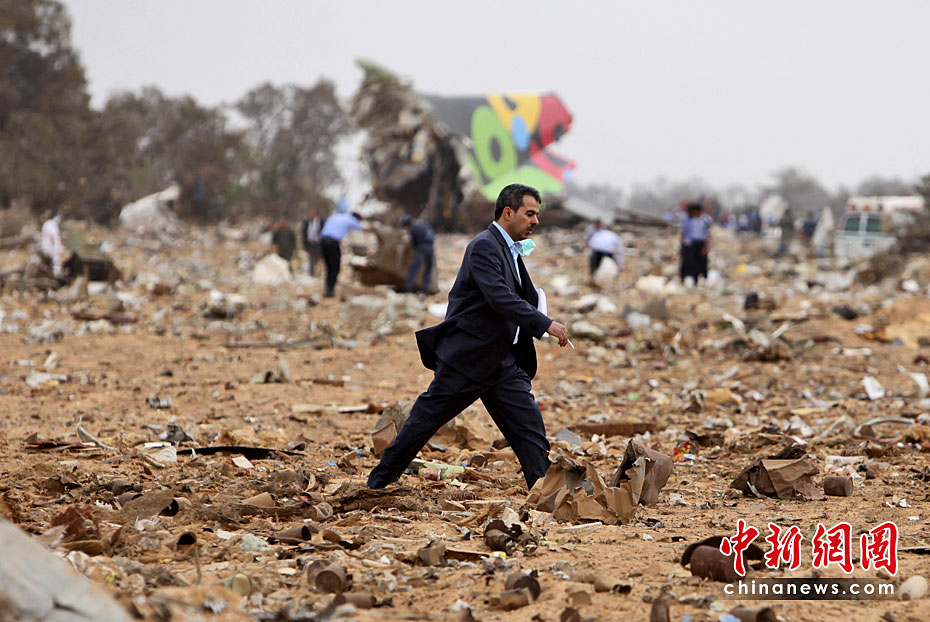 5月12日,一架從南非起飛的利比亞航班在利比亞首都的黎波里機(jī)場墜毀,機(jī)上103名乘客和機(jī)組人員遇難。圖片來源:中國新聞網(wǎng)