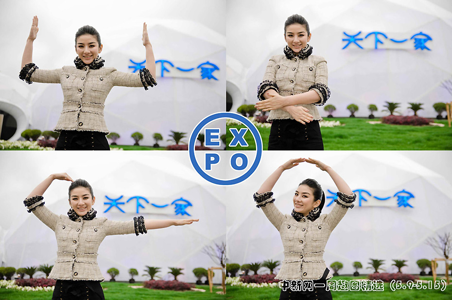 日前上海女孩黃奕來到世博館“天下一家”未來館門口拍攝一組手勢大片,身體力行教大家如何演繹EXPO的含義。圖片來源:中國新聞網(wǎng)>>點擊觀看詳細(xì)內(nèi)容