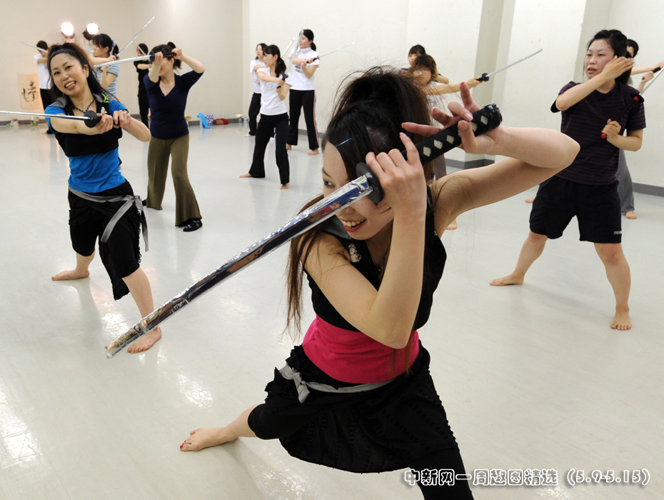 近日,在日本東京,眾多白領女性學起了日本傳統的武士刀,用來減壓。圖片來源:中國新聞網>>點擊觀看詳細內容