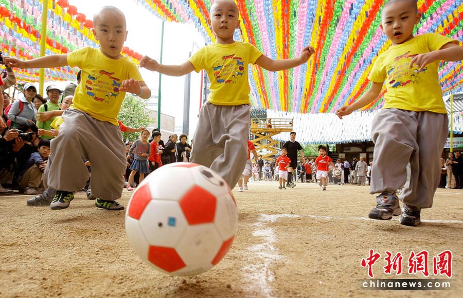 2010年5月15日,韓國首爾曹溪寺院舉行了兒童足球賽,一群四五歲的孩子和小和尚參加了這場足球友誼賽。這場比賽是佛誕節活動的一部分,也是為了迎接2010世界杯足球賽的到來。Chung Sung-Jun