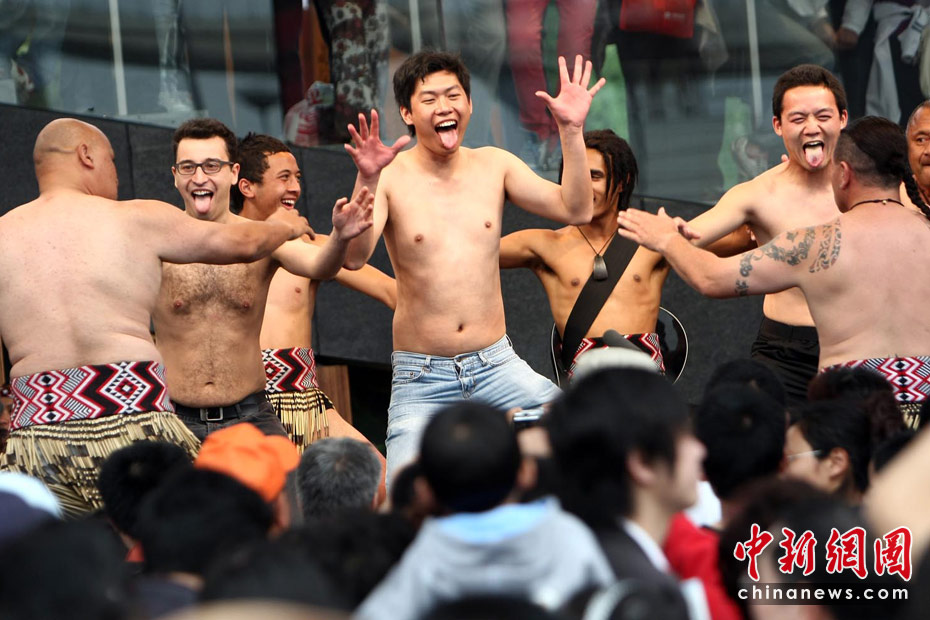 世博趣圖:游客赤膊上陣學跳毛利舞