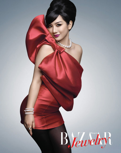 高高蓬起的發髻,剪裁流暢的禮服,還有頸上那串珍珠,沒有刺眼的光芒,沒有絢麗的色彩,典雅且華麗著。如此妝容會讓你想起老上海的名媛佳麗,或是奧黛麗赫本的回眸一笑,那些雋永的美麗。然而當女主角變成黃奕,優雅之外更多的是驚喜。亮紫、淺棕、朱紅,這些原本與經典無關的色彩,在她身上完美的契合,典雅之外的俏皮,精彩之后的永恒,也許,黃奕拍攝的不僅僅是中國頂級的一線雜志《芭莎珠寶》的封面大片,更是她別具一格的生活姿態。