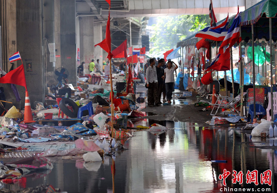 泰國紅衫軍領導人乍都蓬19日下午1時決定,向曼谷警方投降。同時向警方投降的還包括納塔兀、素蓬、翁醫(yī)師等紅衫軍核心領導人。紅衫軍領導人納塔兀責其支持者宣布,結束紅衫軍已持續(xù)了兩個多月的集會示威行動。圖片來源:中國新聞網(wǎng)