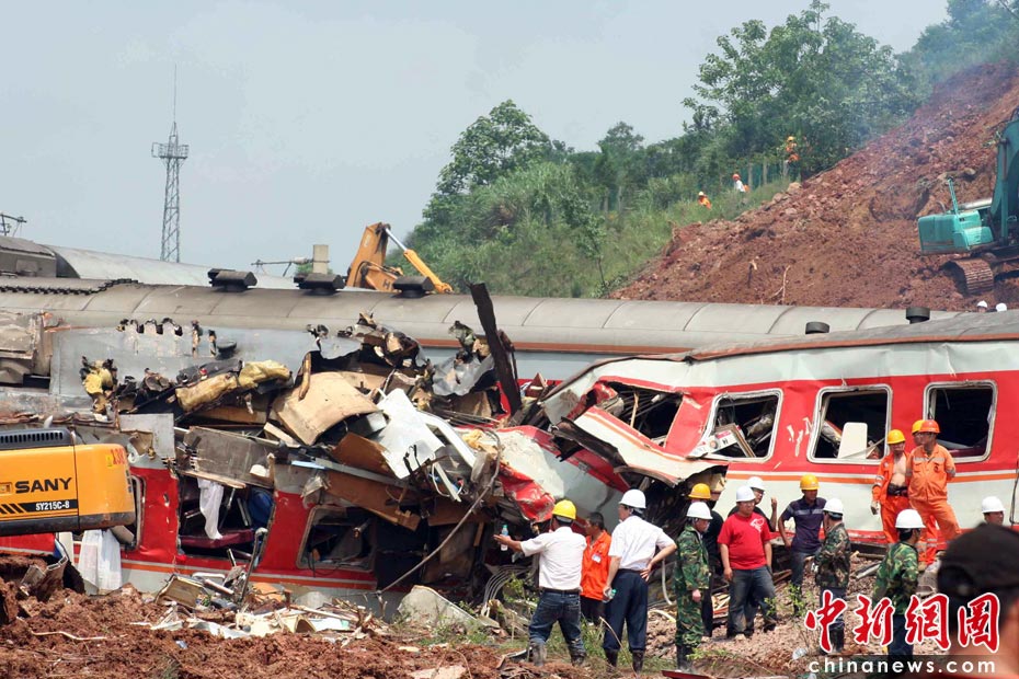 中新網東鄉(xiāng)5月23日電(艾永全 何柳斌 劉占昆)23日下午14時,距離滬昆鐵路客運列車脫線事發(fā)已經12小時,武警、消防、醫(yī)護、交警、特警仍在事故現(xiàn)場緊急救援。 艾永全 攝