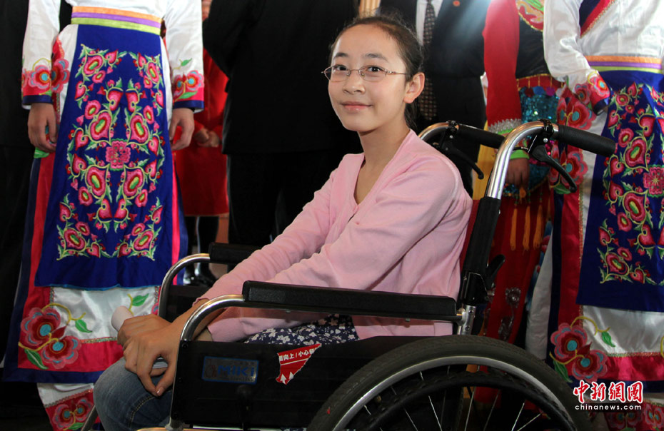 5月24日下午,“四川省感謝臺(tái)灣社會(huì)各界援助‘5.12’地震災(zāi)區(qū)見面會(huì)”在臺(tái)北舉行,汶川強(qiáng)震中失去一條腿的“芭蕾女孩”李月朗誦詩歌,向臺(tái)灣同胞致敬。 中新網(wǎng)記者 董會(huì)峰 攝