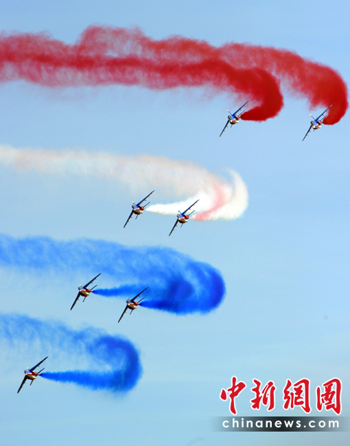 5月25日,法國巡邏兵特技飛行表演隊在普羅旺斯地區(qū)進行驚險的飛行表演。