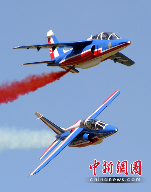 5月25日,法國巡邏兵特技飛行表演隊在普羅旺斯地區進行驚險的飛行表演。