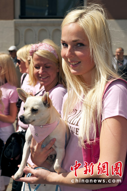 5月29日,在拉脫維亞首都里加,眾多金發美女身著艷麗裝扮在街頭游行,大秀嫵媚身材。