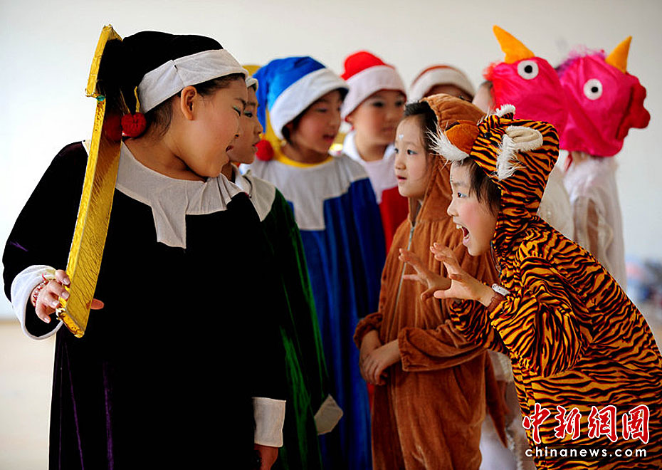 5月28日,遼寧沈陽,沈陽黃河大街小學的小朋友正在表演舞蹈描述自己的幸福的童年。紅一/CFP