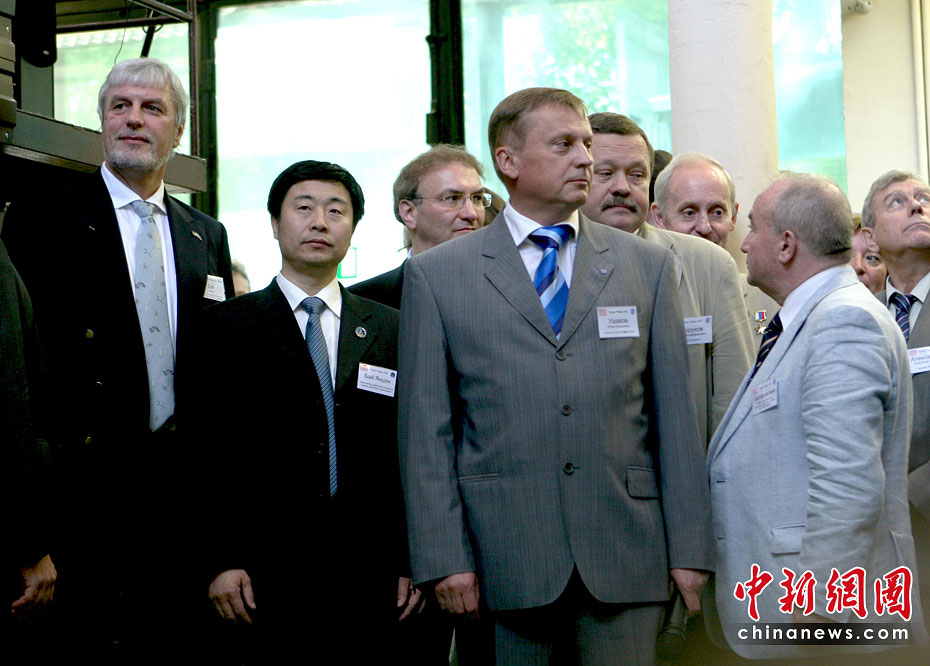 當(dāng)?shù)貢r間6月3日14時,“火星-500”實(shí)驗(yàn)艙最后一道艙門關(guān)閉,人類歷史上首次模擬火星載人航天飛行試驗(yàn)就此拉開帷幕。圖為中國航天員科研訓(xùn)練中心副主任白延強(qiáng)(左二)在進(jìn)艙儀式上。中新社記者 田冰 攝