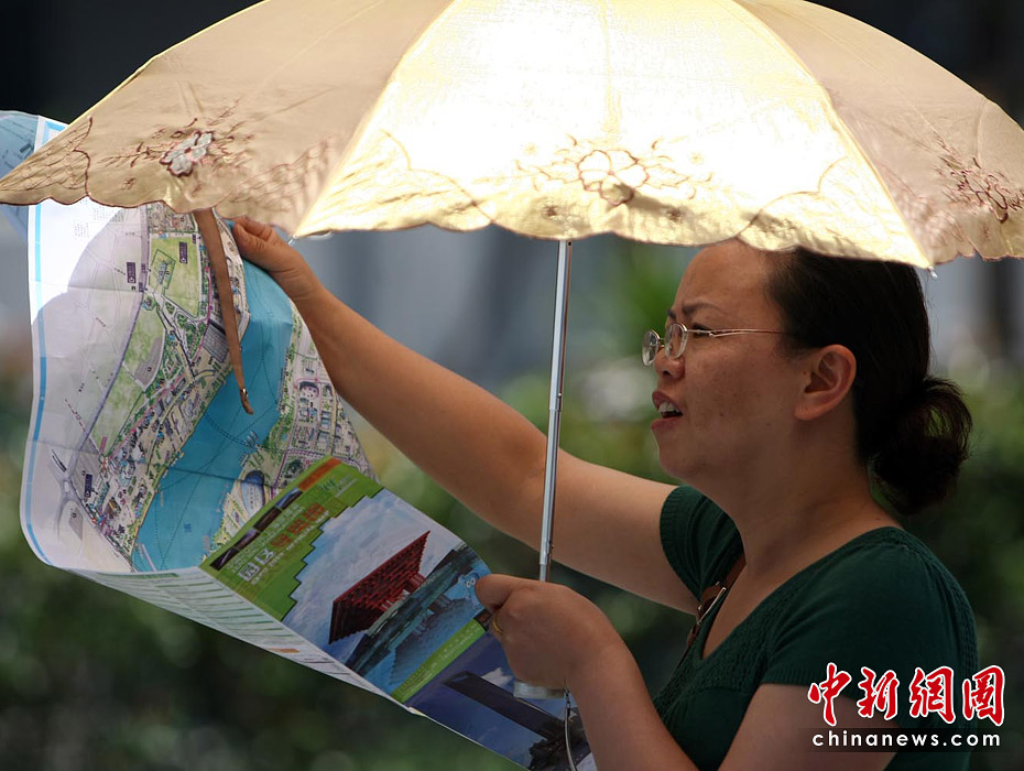 截至6月5日19點(diǎn)30分,上海世博會(huì)累計(jì)參觀者已超過(guò)1000萬(wàn)人次。據(jù)悉,上海世博會(huì)的規(guī)劃用地為5.28平方公里,約242個(gè)國(guó)家和國(guó)際組織參展分布在浦東和浦西兩大區(qū)域。要想在這么大的地方找到自己想去的地方,那么世博地圖就是必須的裝備。圖為上海世博園內(nèi)游客正在地圖上尋找自己要去的地方。中新社記者 杜洋 攝