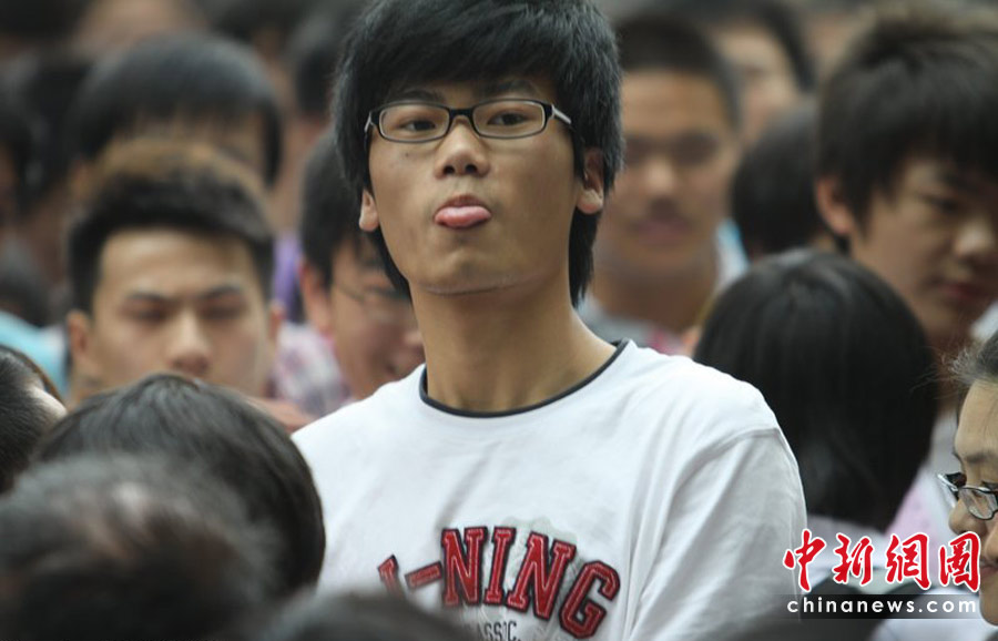 6月7日,為期兩天的2010年普通高等學(xué)校招生全國統(tǒng)一考試開考,全國將有957萬考生走進考場。圖為6月7日,武漢,高考首場結(jié)束,考生輕松走出考場。在湖北武漢建港中學(xué)考點,走出考點的高考生在尋找自己的家長。孫新明 攝