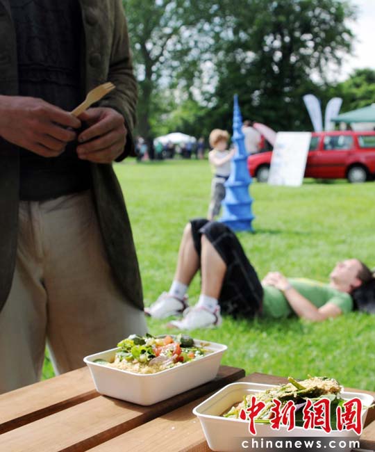 當?shù)貢r間2010年6月6日,英國倫敦舉行卡姆登綠色市集(Camden Green Fair),這是英國倫敦每年環(huán)保領(lǐng)域的“重頭戲”。本屆市集的主旨是要喚起大眾對環(huán)境問題的關(guān)注,選擇更加可持續(xù)發(fā)展的生活方式。據(jù)活動主辦方預計,本屆市集將吸引來自英國各地和世界各國的2萬多人參加。圖為各種素食是綠色展會的絕對“主力”。Fiona/攝 Fiona 馬小剛/文