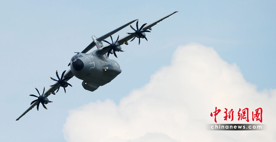 6月8日,德國柏林,一架空中客車A400M軍用運輸機在2010年柏林國際航空展上試飛。