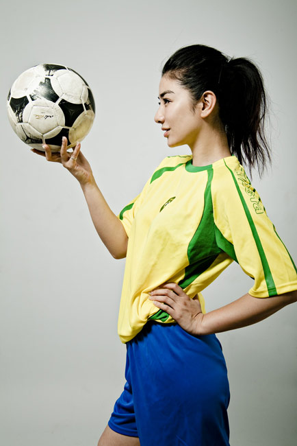 黃奕身穿巴西球衣拍寫真 為世界杯助威