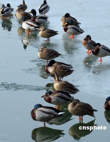 2月16日,連日溫暖的陽光擁抱著初春的北京,北京皇家園林北海公園內(nèi)湖冰漸漸開融,幽雅的環(huán)境招來百余只野鴨子、鴛鴦飛落棲身、嬉戲,吸引眾多游客觀賞。中新社發(fā) 錢興強(qiáng) 攝